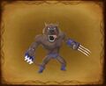 Raging ripped beasts that battle with menacing metal sharpened claws and even sharper fangs, flying into fights with their weapons waving and teeth gnashing. They have dark brown fur and wear greyish-purple wrestling trunks and boots. The jackals save their strength up to unleash their searing attacks, even able and agile enough to flip through the air and strike all foes in a single swoop. They also like to whip out a menacing marital art, the rugged roundhouse kick, striking all foes with a single frantic kick.