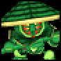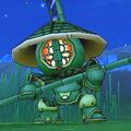 Bambooligans are a mechanical type of monster. They are little and are covered in a green armor to make them resemble bamboo plants. In their head there is the core of the machine and it is protected with a green helm with a ventilation grill where it should be supposed to have a face. These monsters wear a cone-shaped green hat (probably also made of bamboo) that resembles to the one that rice farmers in Japan wore in the past. At their back they have equipped a bamboo pennant, which is taller than them, that is decorated with a blue sky pattern with some bamboo leaves at the sides. As their name suggests, bambooligans love to wield bamboo spears.