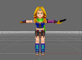 Samshin has had the most drastic change in appearances out of the four spirits. In her debut in 1995 she was depicted as jet black figure wearing sinister armour, wielding two curved swords, and wearing a blue cape. In the 2013 Nintendo 3DS remake of VII she was redesigned to resemble a young woman with blond pigtails wearing eclectic armour and fighting with a curved sword in her left hand with a dagger in her right.